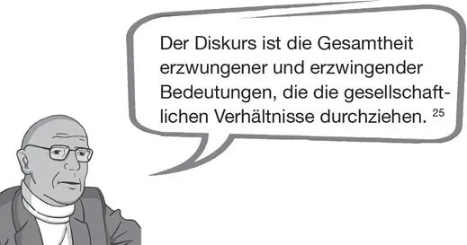 Unter „Diskurs“ versteht Foucault also nicht nur das konkrete Gespräch zwischen Menschen, sondern immer auch die darin mitschwingende Macht- und Wissensformation der jeweiligen Gesellschaft. Denn diese beeinflusst uns ganz entscheidend: