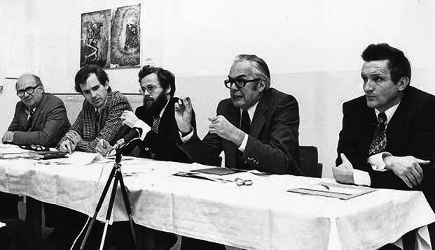 Kulturgespräch mit Gutkas, Fellerer, Siegfried Nasko, Grünzweig und Slawik (v. l. n. r.)