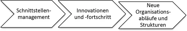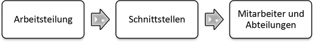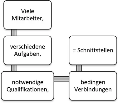 - allein aus der Bedingung, dass viele Mitarbeiter im Unternehmen an verschiedenen Aufgaben, mit verschiedenen notwendigen Qualifikationen arbeiten, bedingt die Verbindung über Schnittstellen untereinander.