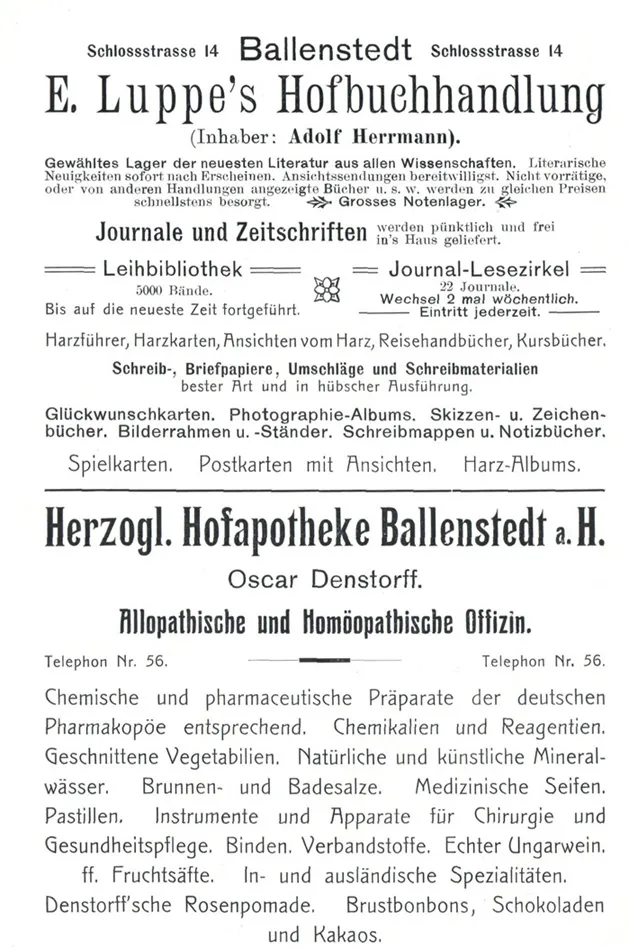 Reprint eines Stadtführers von Ballenstedt und Umgebung aus dem Jahre 1906, ergänzt durch einige Vergleichsphotos von gezeigten Stadtansichten aus dem Jahre 2020.
