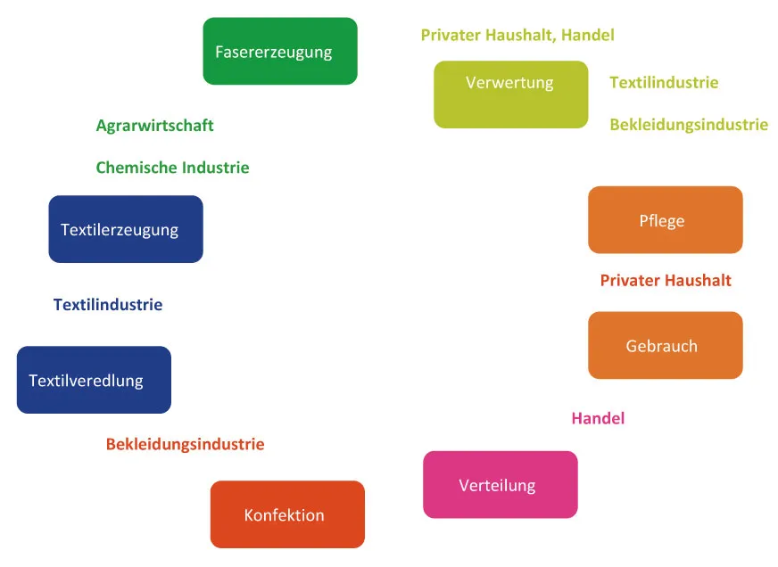 Die textile Kette jedenfalls birgt ökologisch beleuchtet noch großes Optimierungspotential, auch wenn die ersten Steine auf dem Weg zu ihrer Ökologieverträglichkeit bereits gelegt wurden. Die Zielstellung dieses Buches ist damit einhergehend die Ökologieverträglichkeit aller Lebenszyklusphasen der Bekleidung in allen drei Teilbereichen der Textilökologie zu beleuchten, im Folgenden genannt: