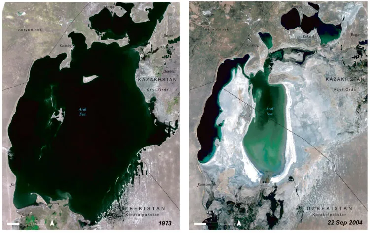 Abb. 2.3.: Der Aralsee im Flächenvergleich 1973 und 20047