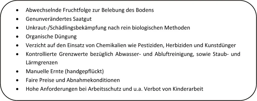 Wesentliche Merkmale des Biobaumwoll-Anbaus11 sind: