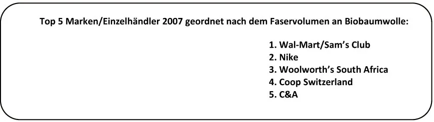Abb. 2.4.: Top 5 Marken/ Einzelhändler 2007 geordnet nach dem Faservolumen an Biobaumwolle13