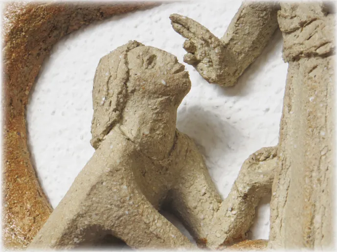 - Teilausschnitt aus der Wandkeramik des Kreuzweges in der Bonifatiuskapelle