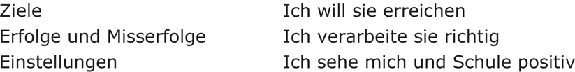| Einstellungen | Ich sehe mich und Schule positiv |