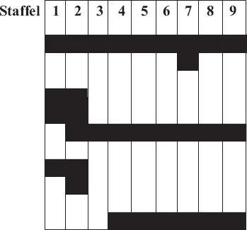 Rolleneinteilung nach Staffeln von 1 bis 9