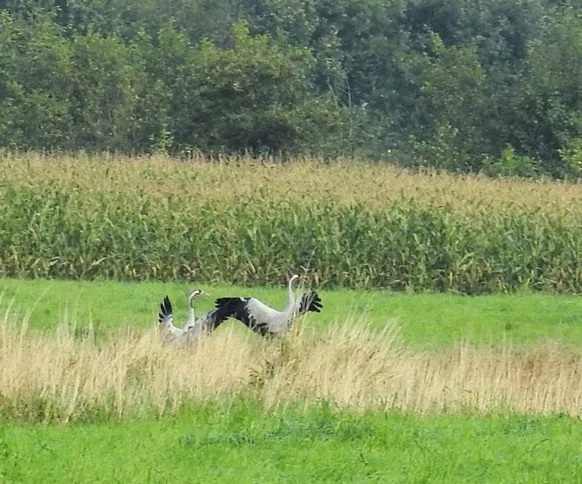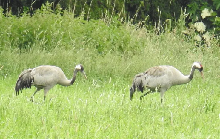 Unsere Kraniche leben in Bockhorst bei Hohenwestedt oder sollen wir besser schreiben lebten, denn sie wurden wissentlich und zielorientiert vertrieben. Es war unfassbar! Schon seit Jahren hatten sie in einer kleinen Sumpfsenke, die in einer gesetzlich geschützten Wiese des FFH-Gebietes „Haaler Au“ liegt, gebrütet und Junge zur Welt gebracht, da kam in diesem Jahr das abrupte Ende. Was war geschehen?