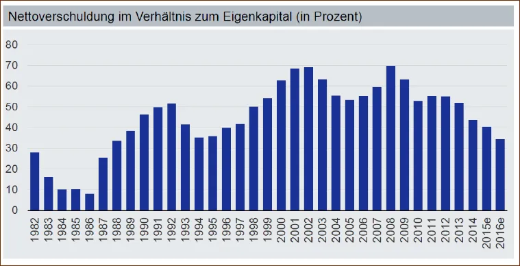 Abbildung 3: Nettoverschuldung europäischer Unternehmen in% des Eigenkapitals