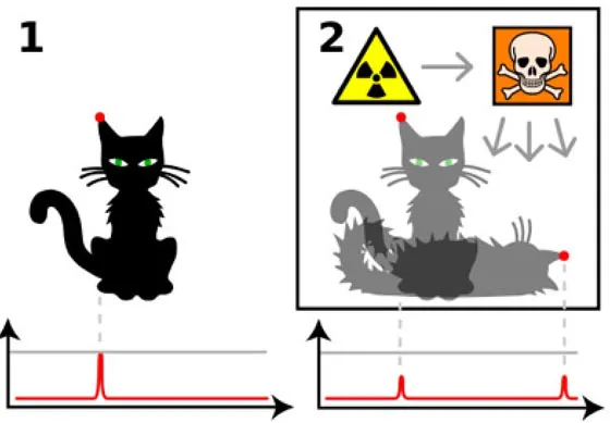 Die Beschreibung der Realität mit Hilfe von Wellenfunktionen führt zuweilen zu bizarr anmutenden Schlussfolgerungen: Zur berüchtigten Schrödinger-Katze etwa, die so lange einen Zustand zwischen Leben und Tod einnimmt, bis jemand nachsieht.