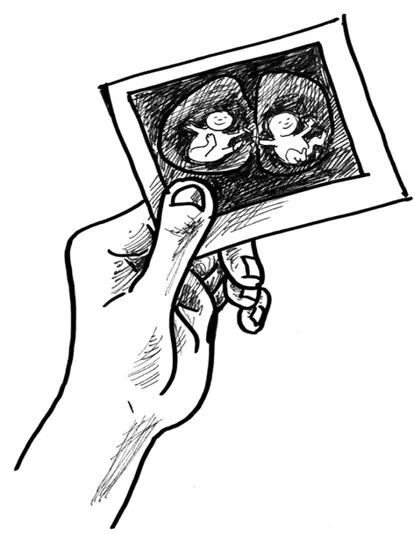 Es dauerte einige Tage, bis sich das P auf Brittas Stirn gelegt hatte. Ich habe nicht viel dafür tun müssen. Wir hatten uns nach langen (und ziemlich ergebnislosen) Diskussionen dazu entschlossen, das Schicksal entscheiden zu lassen. So hatten wir uns den nächsten Frauenarzttermin als endgültigen Entscheidungstermin gelegt. Man muss dazu wissen, dass im frühen Zwillingsstadium ein Zwilling noch relativ oft „verloren“ geht. Dies war (Gott sei Dank) bei uns nicht der Fall. Und als uns die Ärztin auch beim nächsten gemeinsamen Termin beide Punkte (also beide Zwillinge) gezeigt hatte, war unsere Entscheidung nun eine gemeinsame: Wenn beide Kinder sich so durchsetzen, dann schaffen wir das auch.
