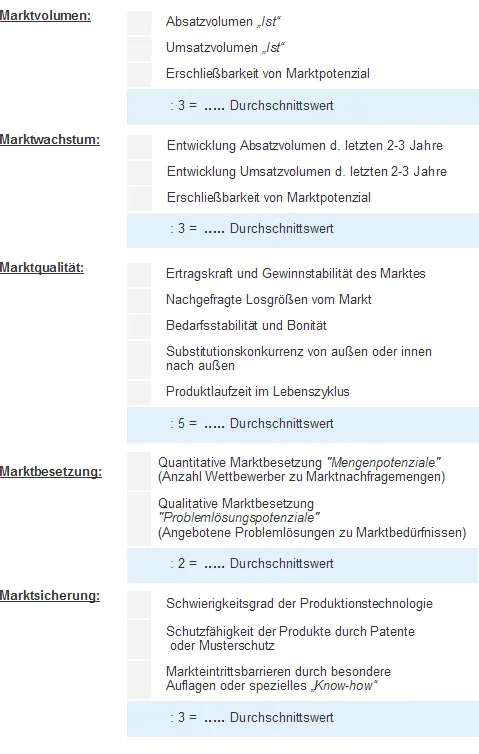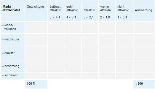 - Entwicklung in den letzten 5 Jahren: stetig rückläufiges, niedriges Marktvolumen, niedriges Marktwachstum und geringe Marktqualität, keine Markteintrittsbarrieren für Wettbewerber, Marktbesetzung nicht attraktiv