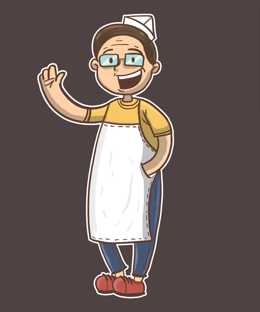 Ich liebe Pommes … vielleicht sogar etwas mehr als meine Kunden. Pommesliebe eben. Auf jeden Fall mag ich sie mehr als sie gut für mich sind. Wie du dir denken kannst, war ich schon in so einigen Imbissbuden. Ich habe dann von jeder Imbissbude jedes Griechen, Italieners, Chinesen – eben von jedem Schnellimbiss – die besten Aspekte zusammengetragen und Pommes-Peter kreiert.