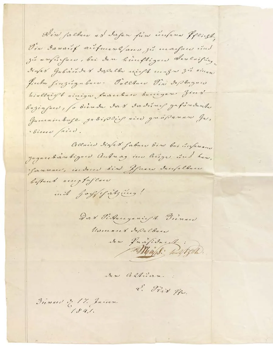 Allein dieses haben wir bei unserem gegenwärtigen Antrag im Auge und verharren, indem wir Ihnen denselben bestens empfehlen mit Hochachtung!