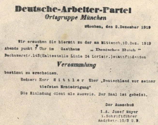 Abbildung 1: Damals in München verteilte Einladungszettel zum Vortrag „Deutschland vor seiner tiefsten Erniedrigung“. Reproduktion des Originals durch den Autor.