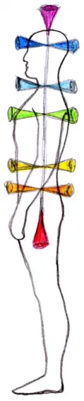Abb. 2: Anordnung und Farbe der trichterförmigen Chakren