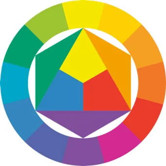 - die Farbkontraste immer den gleichen Abstand zueinander haben (also der Abstand zwischen gelb und violett ist der gleiche wie zwischen rot und türkis)