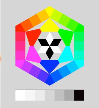 Abb.4b: Das Basisschema der Farbenlehre nach Harald Küppers (1976), (aus Wikipedia, © CC BY-SA 3.0)
