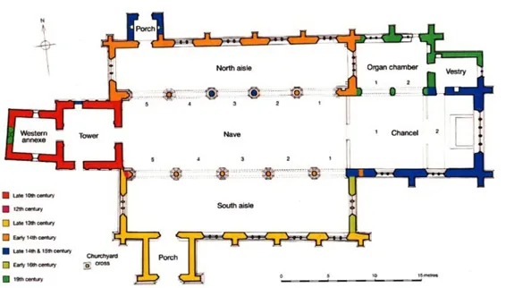 Barton-upon-Humber, St. Peter. Grundriss mit Datierung der Bauteile. Entnommen aus [RODWELL/ATKINS, 413]