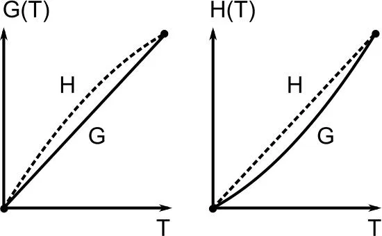 Abb. 1.1 Problem der linearen Skaleneinteilung zwischen zwei Fixpunkten. Mit der Annahme der Größe ist die Größe H nichtlinear. Andererseits ist mit die Größe G...
