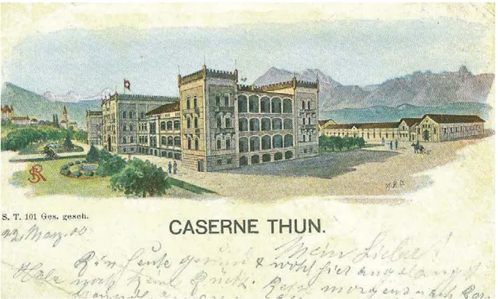 Anfang der 1860er Jahre wurden die Weichen zur weiteren Entwicklung der Stadt Thun gestellt. Thun wurde zu einem der wichtigsten Waffenplätze der Schweiz und zu einem Zentrum der Rüstungsindustrie. Die imposanten eidgenössischen Kasernenbauten aus den Jahren 1868, 1901/02 und 1940 zeugen bis heute von der Entwicklung der militärischen Ausbildung.