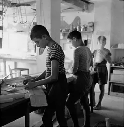Modellbau verleiht auch geistige Flügel: Knaben im Werkunterricht, wo ein Modellsegelflugzeug entsteht.