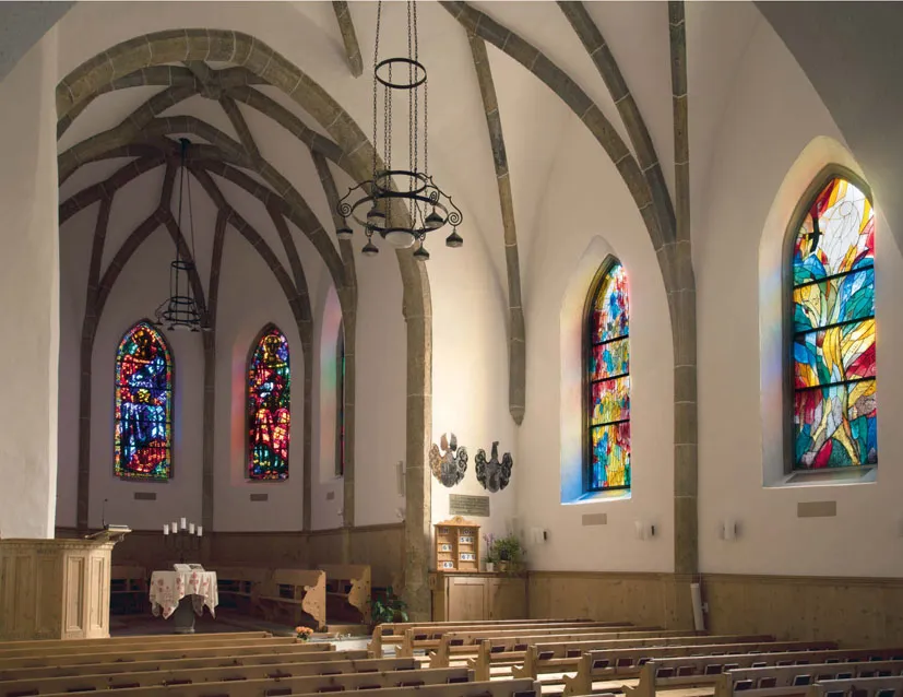 Das Bündner Dorf Zuoz ist bekannt für sein intaktes Dorfbild. Gleichzeitig beherbergt der Engadiner Ferienort auch eine ausserordentliche Sammlung von herausragenden Glasmalereien. So lassen sich heute auf einem kurzen Rundgang im Dorfzentrum die wichtigsten Entwicklungen der Schweizer Glasmalkunst des 20. Jahrhunderts ablesen. Seit dem Einbau des ersten Fensters von Augusto Giacometti im Jahre 1929 sind bis heute weitere 23 Glaskunstwerke im öffentlichen Raum installiert worden. Mit grossem Geschick haben es die sieben hier vorgestellten Glasmalerinnen und Glasmaler verstanden, ihre Werke in die historische Bausubstanz zu integrieren – als ob sie immer Teil davon gewesen wären.