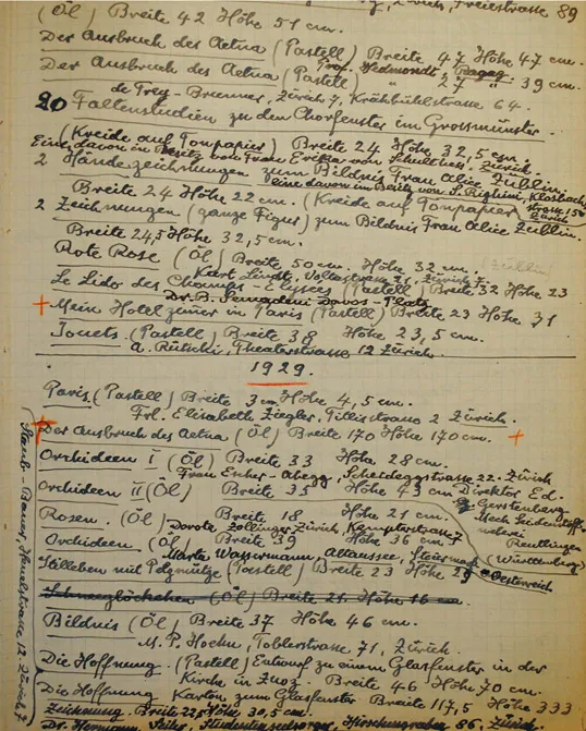 Eintrag zum Entwurf & Karton für die Hoffnung im Notizheft von Augusto Giacometti, 1929