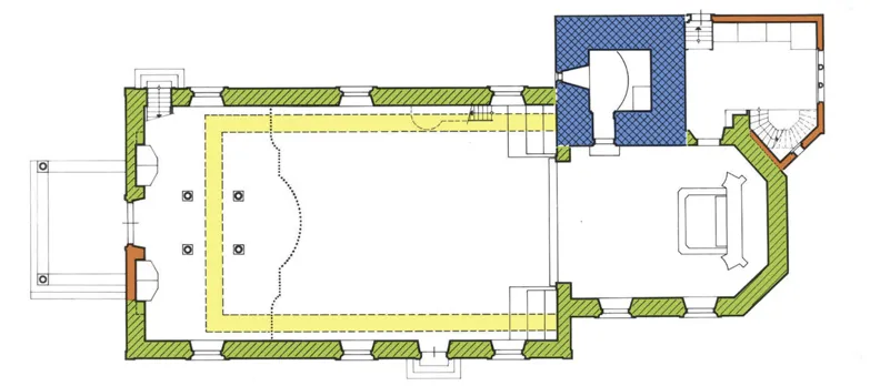 Grundriss der Kirche St. German mit Angabe der Bauphasen.