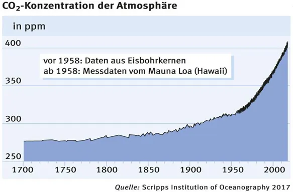 „Durch den Verbrauch fossiler Brennstoffe hat der Mensch den CO2-Anteil in der Atmosphäre etwa seit dem Jahr 1900 bereits von 280 ppm auf mehr als 400 ppm erhöht. Handeln wir nicht sofort, werden wir nach dem pessimistischsten Szenario des Weltklimarats (IPCC) im Jahr 2100 eine Erdatmosphäre mit 1000 und 100 Jahre später sogar mit 2000 ppm CO2 erleben. Gegen die Menge des CO2 wie auch die Geschwindigkeit, mit der sie steigt, werden die natürlichen Regulierungsmechanismen nicht schnell genug ankommen. Eine Erde, wie der Mensch sie nie gekannt hat, wird die Folge sein.