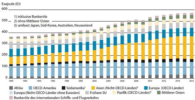 ABB. 1: Der globale Primärenergiebedarf ist in den letzten Jahrzehnten stetig gewachsen