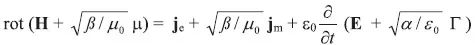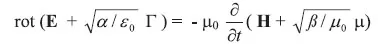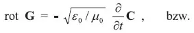 | c = (ε0 μ0)-1/2 Lichtgeschwindigkeit ( c = 3 × 108 m/s) | ω = (αβ)-1/2 Geschwindigkeit |
