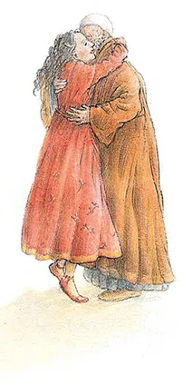 Recha kam aus dem Haus gelaufen und stürzte sich in Nathans Arme: »Mein Vater, hast du schon gehört? Ein Wunder ist geschehen! Ein Engel, ein wirklicher Engel hat mich durchs Feuer getragen und gerettet!«