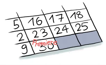 Auf dem Kalenderfoto für Juni ist ein Affe. Und im Kalender steht für heute: Premiere.