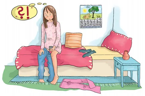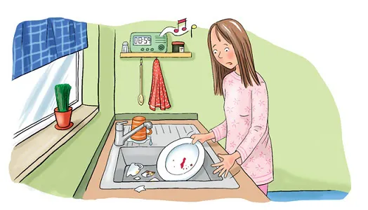 ‚Es ist okay, wenn Mama und Papa ohne mich frühstücken. Aber warum haben sie mich nicht geweckt? Heute muss ich unbedingt pünktlich in der Schule sein. Und Tschüs haben sie auch nicht gesagt.‘