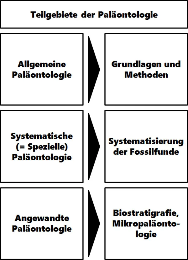 Die einzelnen Teilgebiete der Paläontologie und ihre zentralen Aufgabenbereiche.