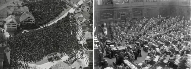 Abb. 1 (links): Landsgemeinde des Schweizer Kantons Appenzell-Ausserrhoden in Hundwil (Foto: W. Friedli, 24.04.1949)6.