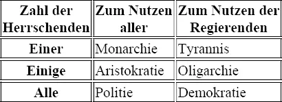 Tab. 1: Erste Staatsformenlehre nach Aristoteles (Politik 3,6–8).