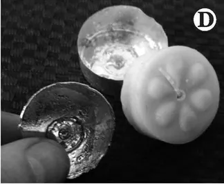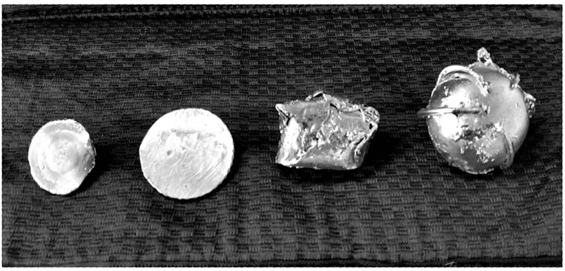 Ein „Silberflutschi“ kann in allen möglichen Formen auftreten. Als einfacher Klumpen, als eine Art Münze oder auch als aufwendig gearbeitetes Schmuckstück. Der Kreativität sind dabei kaum Grenzen gesetzt. Das Prinzip dabei ist klar, die zu erscheinenden Gegenstände, es eignen sich ganz hervorragend Geldscheine, Spielkarten oder auch Zettel, befinden sich natürlich im Innern der „Silber-Flutschis.“ Fest verschlossen kann der Gegenstand dann bedenkenlos vom Publikum untersucht werden. In diesem Kapitel beschäftigen wir uns mit der Herstellung dieser possierlichen „Silber-Flutschis,“ wobei wir mit den einfachen Formen beginnen. Ganz wichtig, je dünner das Material des „Silber-Flutschis“ ist, desto schneller löst er sich im heißen Wasser auf. Mit ein wenig Übung ist es möglich, Bleche zu erstellen, die keinen halben Millimeter dick sind, und die sich so schnell im Wasser auflösen, dass es unnötig ist, das Glas kurzfristig zu verdecken.