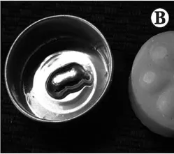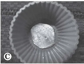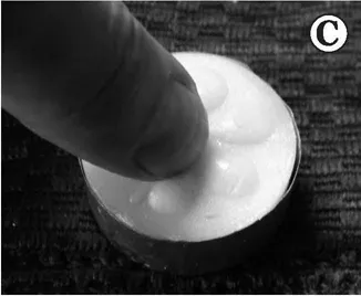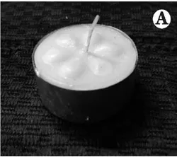 Ist das Gallium eingefüllt worden, dann steckt man die Kerze wieder in die Halterung und drückt sie sanft nach unten, um so ein rundes Blech zu erzeugen.