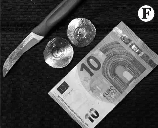 Für die Füllung unserer Münze benötigen wir einen Geldschein und ein kleines Messer. Die runden Bleche werden zunächst leicht schüsselförmig gebogen. Der Geldschein wird dann so klein gefaltet, dass er vollständig in eines der gebogenen Bleche passt. Das zweite Blech kommt dagegen.