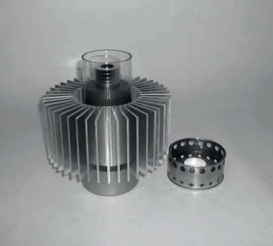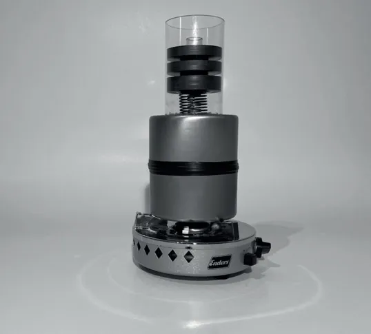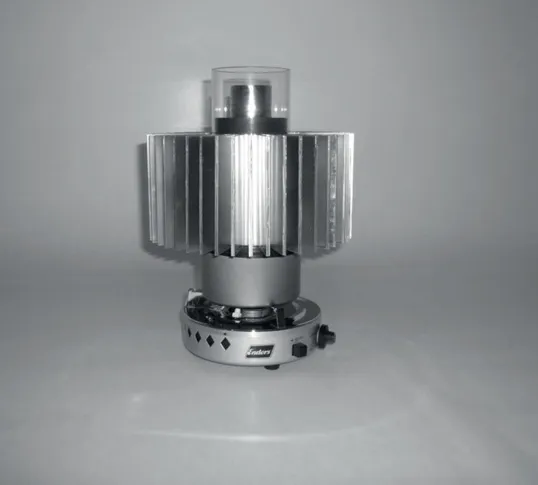 Bei dieser Abbildung handelt es sich um einen hermetisch abgedichteten Prototyp. Mit dieser Anordnung konnte ich erstmals Tests mit Überdruck durchführen. Getestet wurde Luft, Stickstoff und Helium als Arbeitsgas. Aus Sicherheitsgründen wurde der Mitteldruck auf maximal 10 Bar begrenzt. Ein Schwachpunkt war der Erhitzer, er war aus zwei Teilen mit Hartlot zusammengelötet. Ein ...