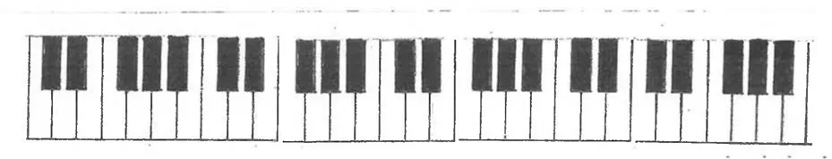 Schauen Sie auf das Muster, das die schwarzen Tasten bilden: abwechselnd sehen wir eine Zweier- und eine Dreiergruppe.