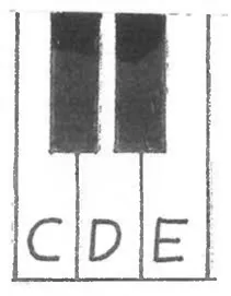 Die Tasten C, D, E umrahmen die schwarze Zweiergruppe.