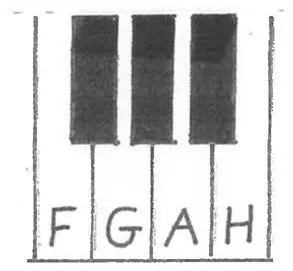 Die Tasten F, G, A, H umrahmen die schwarze Dreiergruppe.