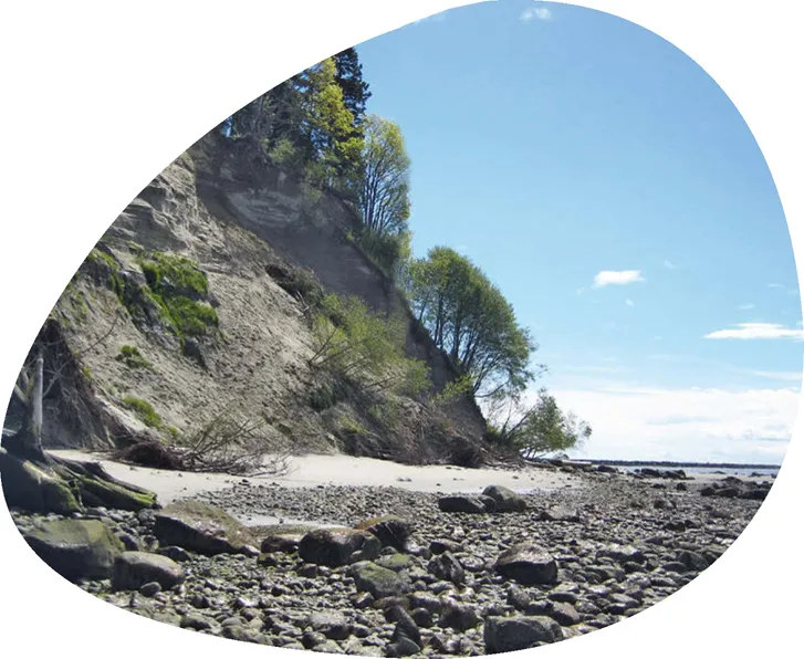 Auch das Meer produziert Kies und wirft einen Teil davon mit den Wellen auf den Strand. Dort, wo die Flut nicht mehr regelmäßig hinkommt, entwickelt sich zwischen den Steinen eine ganz spezielle Strandflora. Die Steine liegen hier selten so wie etwa bei den Rügener Feuersteinfeldern als homogene Schicht, sondern meistens eingebettet in Sand. Aber Feuerstein ist ein gutes Stichwort. Er bleibt oft übrig, wenn das Meer weiches Sediment abträgt. An der Südküste Englands etwa bestehen ganze Strände aus Feuersteinkieseln. In Kroatien finden sich am Strand Kiesel aus hartem Kalkstein. Das Meer hat sie aus den erdmittelalterlichen Sedimenten geschliffen, die dort überall an der Küste anstehen. An der Ostsee sind es oft bunte Kiesel aus den Urgesteinen Skandinaviens, die die Eiszeit im Einzugsbereich des Meeres abgelagert hat.