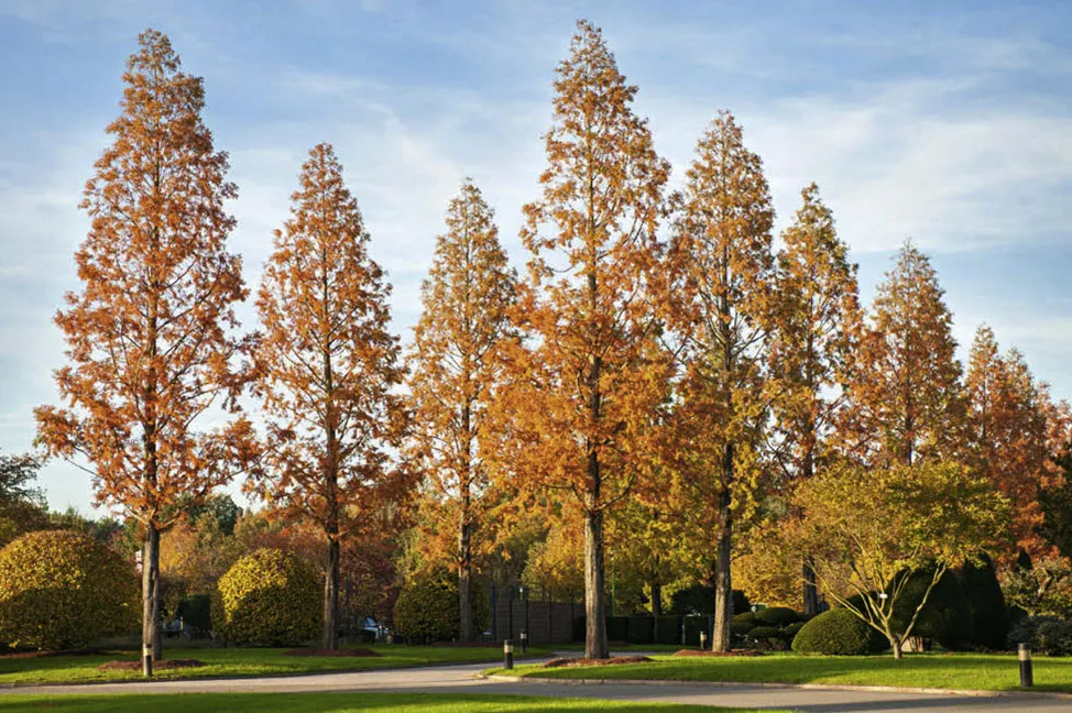 Baumreihen entlang von Straßen und Zufahrten blicken auf eine lange Tradition zurück. Neben klassischen Linden, Kastanien oder Säulenpappeln bietet sich eine Vielzahl von Bäumen für die Pflanzung als Allee an. Eine eher ungewöhnliche Allee-Variante ist der Küstenmammutbaum (Metasequoia sempervirens).