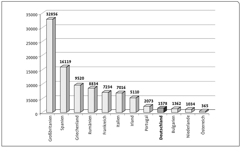 Abb. 3. Schafbestände in ausgewählten Ländern der Europäischen Union in 1000 Stück im Jahr 2013 (FAOstat 2014).