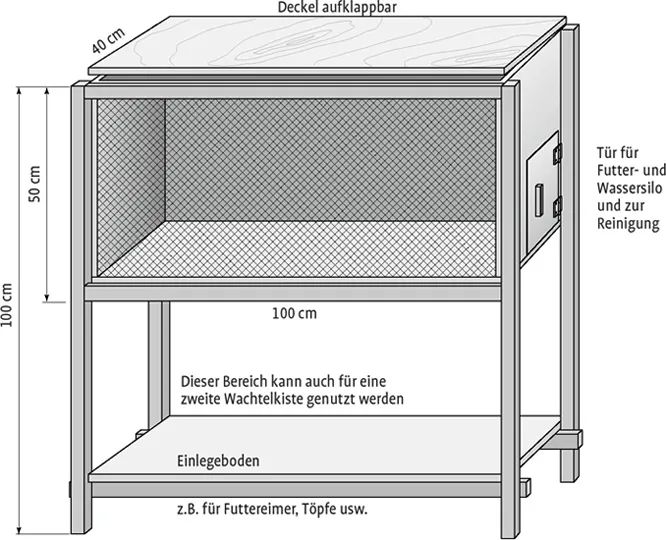 Eine einfache, selbst gebaute Wachtelbox eignet sich sehr gut für die Beobachtung der Tiere.