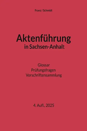 Ja, du hast Zugang zu Aktenführung in Sachsen-Anhalt von Thorsten Franz im PDF- und/oder ePub-Format sowie zu anderen beliebten Büchern aus Business & Business General. Aus unserem Katalog stehen dir über 1 Million Bücher zur Verfügung.
